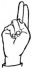 На ћирилици написано ЈЕЛИСАВЕТА ЈОВЕЉИЋ састоји се из 17 слова [?]. Исписано ћириличном једноручном азбуком за глувонеме: